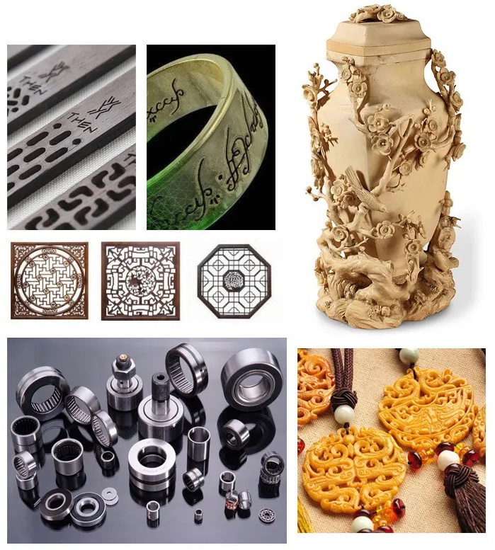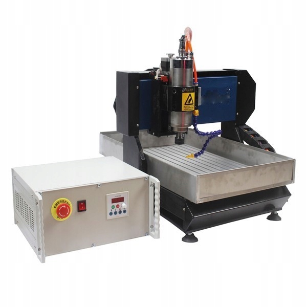 Akcesoria: zaciski, klucze, frezy, kabel zasilający, kabel USB, pompka wody do wrzeciona / chłodzenia narzędzia, czujnik wysokości narzędzia
