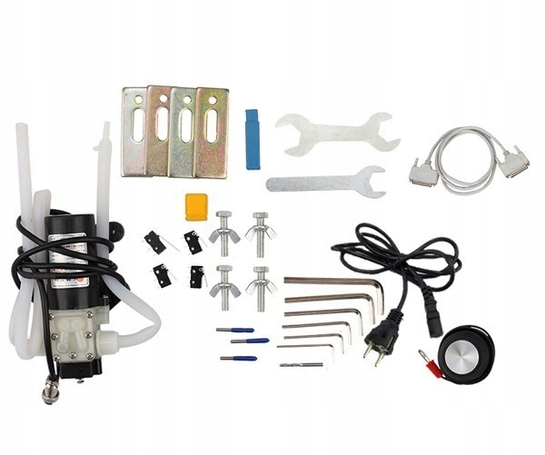 Dodatkowo w zestawie: frezy, kabel zasilający, uchwyt mocujący, pompa wody