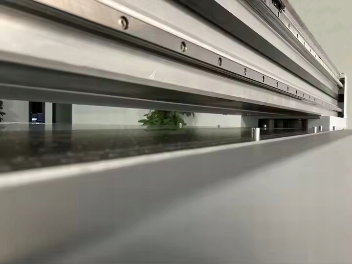 Solidna konstrukcja ramy wykonana z aluminium i wysokiej jakości prowadnice sprawiają, że drukarka pewnie i stabilnie porusza się nad polem roboczym w pełnym jego zakresie. To istotne podczas drukowania szczegółowych obrazów, pełnych kolorów i detali.